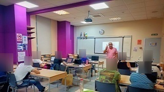 Presentación del Tercer Puesto del videojuego de mi alumnado, «To’s pal Pino». Con la Directora y Subdirector de Formación del SCE, y con la Directora, Coordinadora de formación y Gestora RRHH del Centro Internacional Politécnico.